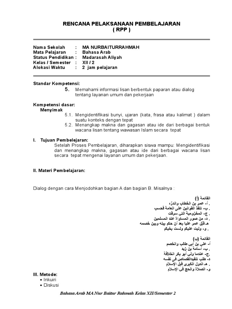 Uncategorized Rpp Bhs Arab Kelas / Soal ulangan kelas 5 tema 8 kurikulum 2013. Rencana pelaksanaan pembelajaran (rpp) bahasa arab kelas 4, 5, dan 6 madrasah ibtidaiyah lengkap.